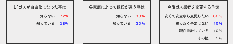 そんな中、水道・電気に続くライフラインであるプロパンガスは自由価格で有りながら今も尚、公共料金と勘違いされていたり「昔から」や「なんとなく」と言う理由で現供給業者とご契約されいる方も少なくは無いのでしょうか?