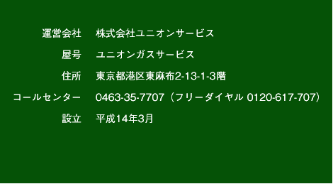 地域プロパンガス販売店と共に優れた保安管理と信頼の実績を当社は「安心・安全・安価」をスローガンにお客様第一主義の営業方針を執らせていただいております。UNION GAS SERVICE